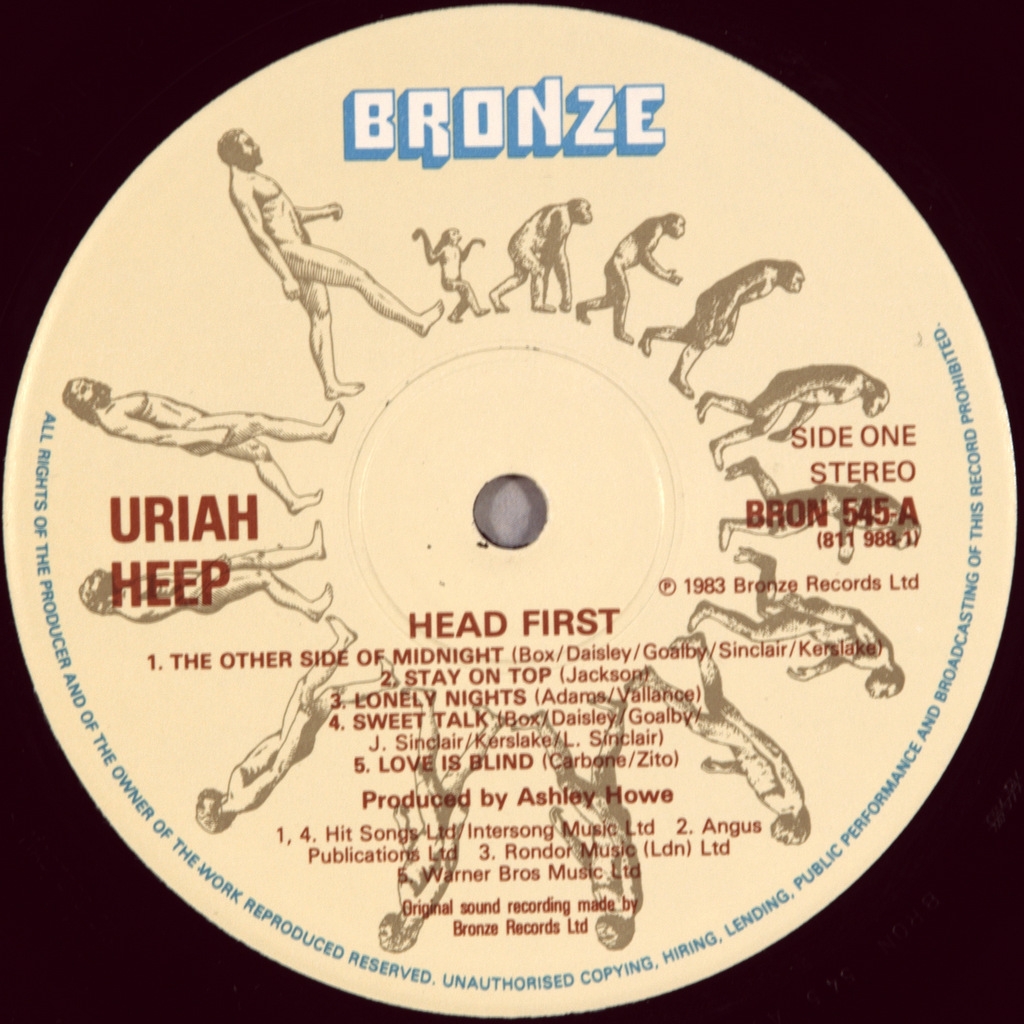 URIAH HEEP-HEAD FIRST-1983-FIRST UK PRESS-BRONZE number BRON545.