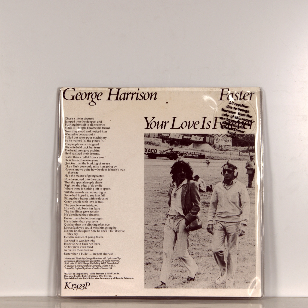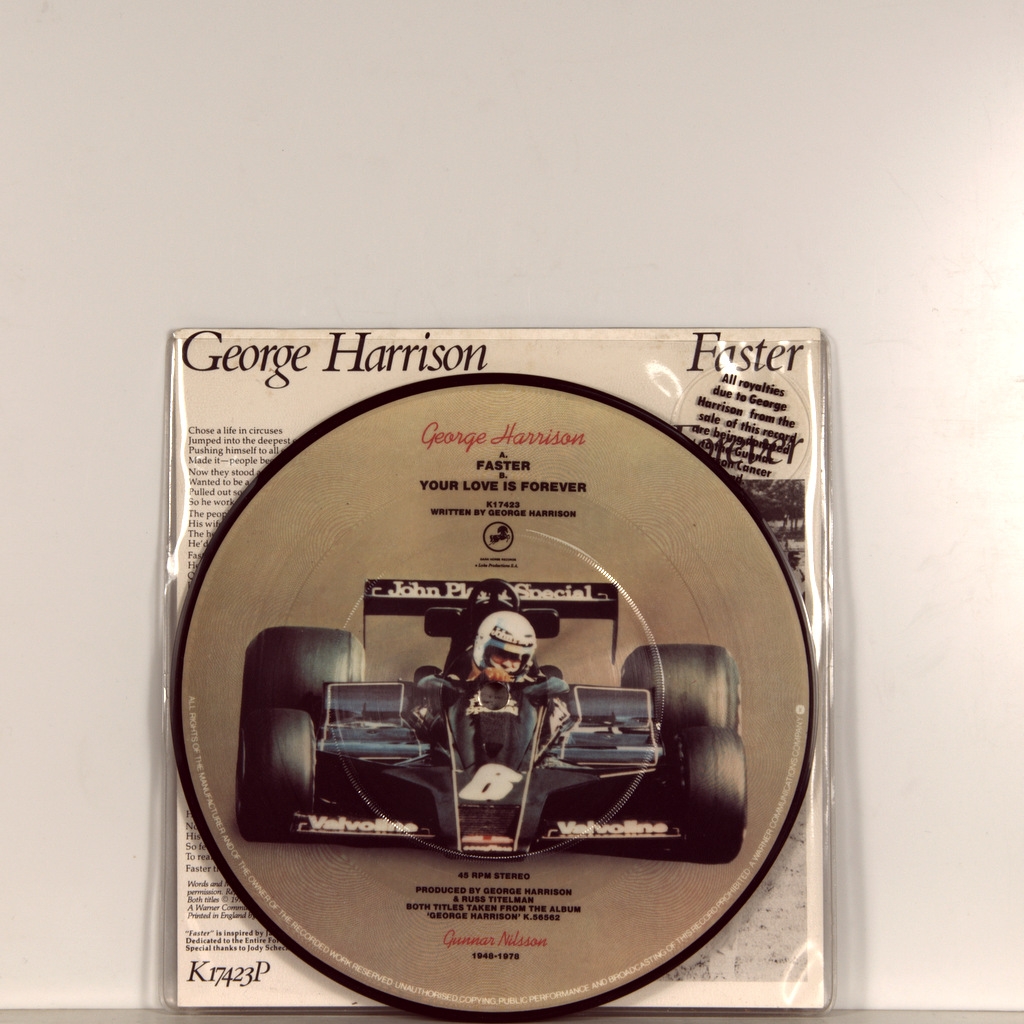 HARRISON, GEORGE-FASTER (VINYL, 7", 45 RPM, SINGLE, PICTURE DISC)-1979-FIRST PRESS UK-DARK HORSE number K17423P. Rare picture single, GEORGE HARRISON.