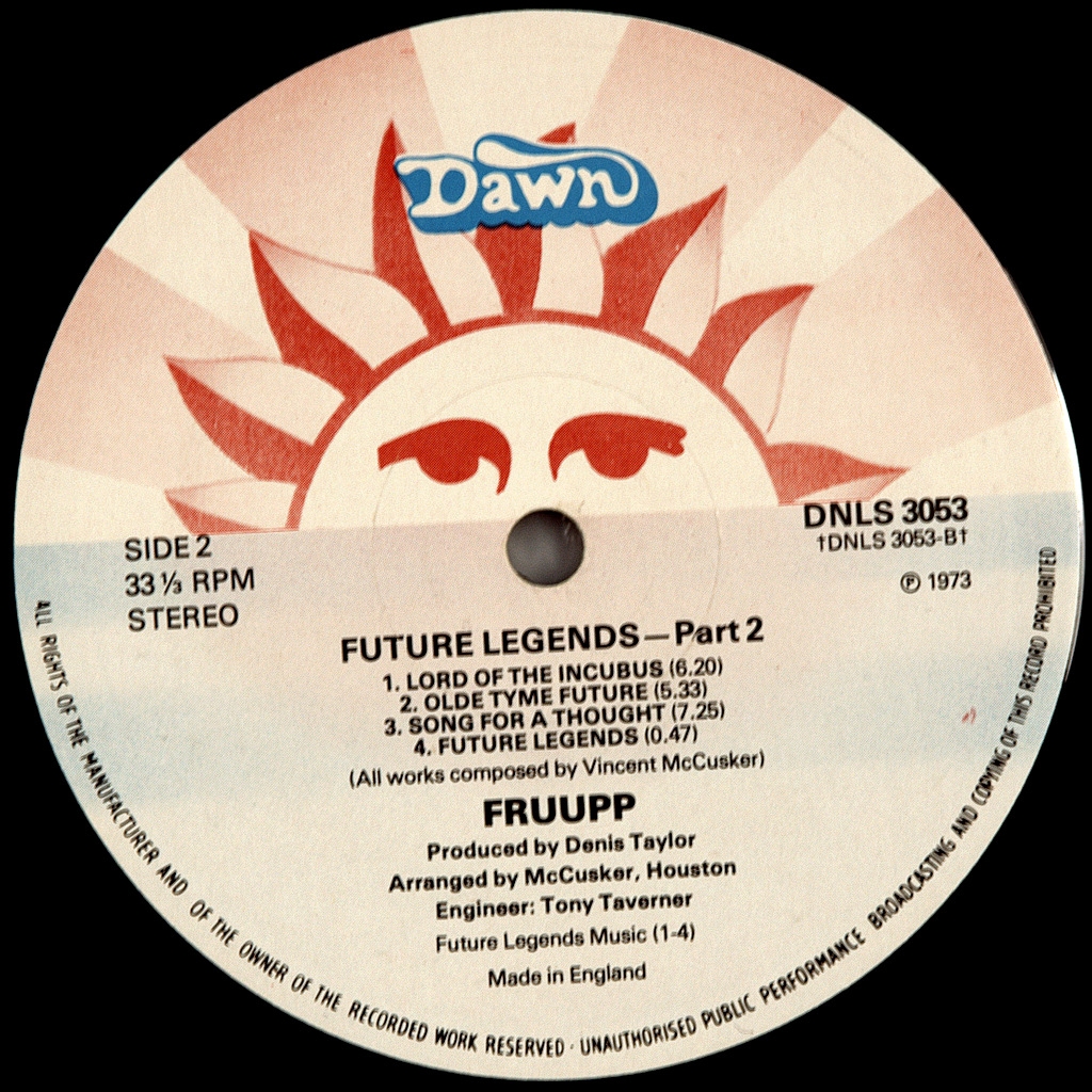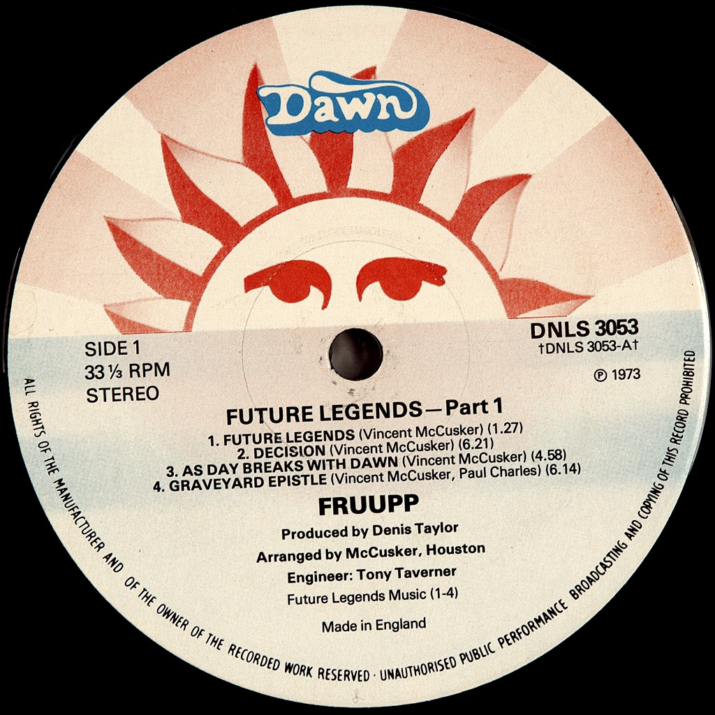 FRUUPP FUTURE LEGENDS-1973-FIRST UK PRESS-DAWN number DNLS3053.Rare first album from legendary British prog group.