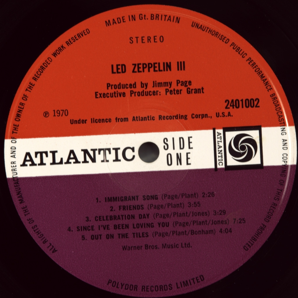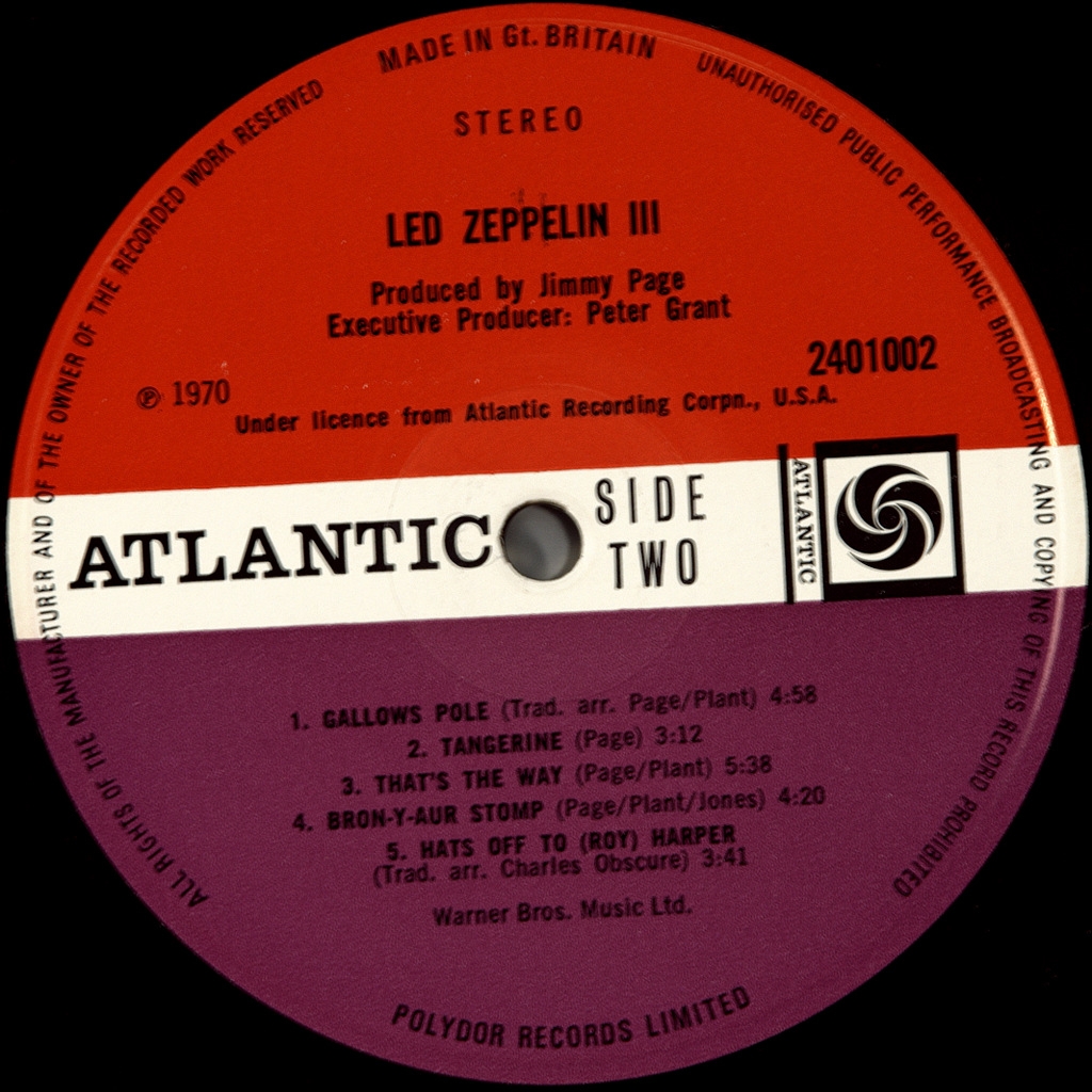 LED ZEPPELIN-III-1970-FIRST UK PRESS-ATLANTIC - number 2401002 matrix A5/B7. credits PAGE/GRANT