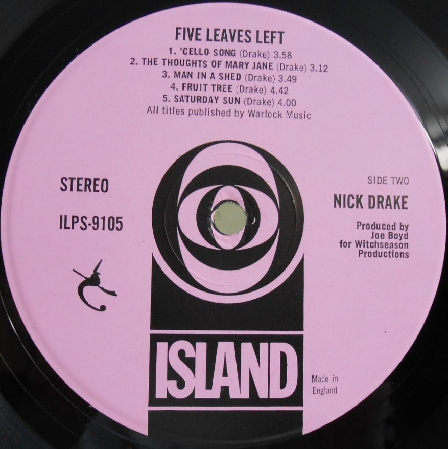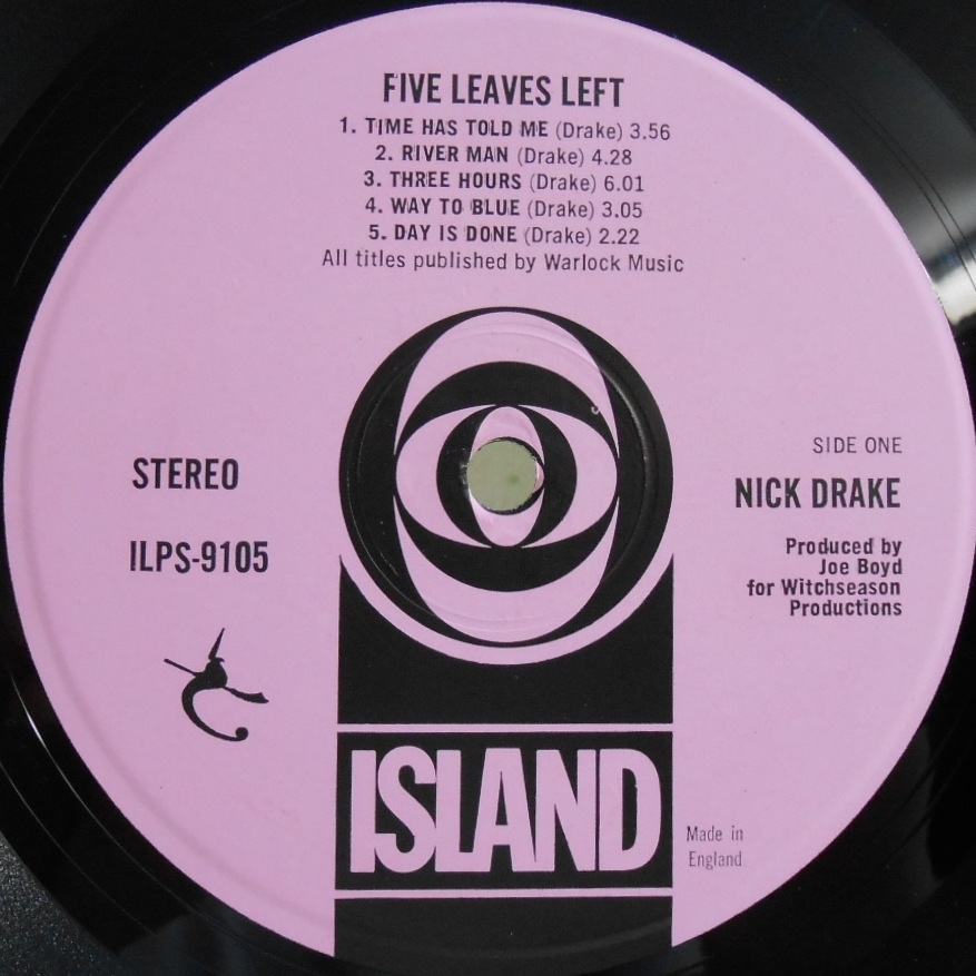 NICK DRAKE-FIVE LEAVES LEFT-1969-FIRST UK PRESS-ISLAND room ILPS9105. Mega rare original in top condition. British folk legend. Released three albums before he died in 1974 from an overdose of antidepressants.