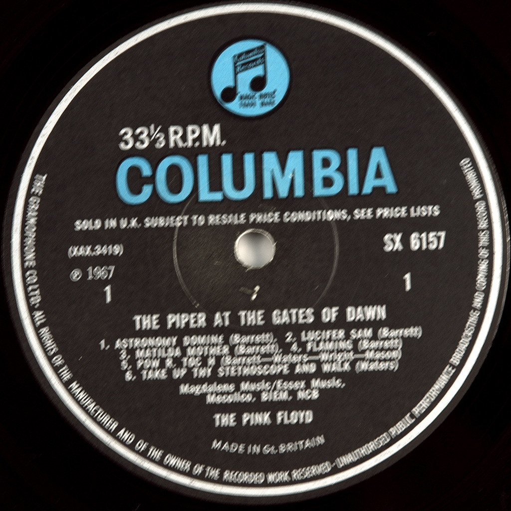 PINK FLOYD - THE PIPER AT THE GATES OF DAWN (MONO)-1967-FIRST UK PRESS-COLUMBIA - SX6157 matrix XAX-3419-1/XAX-3420-1 , Stamper 1A/1A .