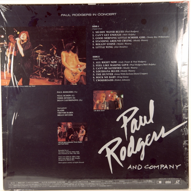 Video laser disc PAUL RODGERS AND COMPANY-PAUL RODGERS IN CONCERT-1993-JAPAN-VICTORY-NTSC-number VILP-50-double-sided silver