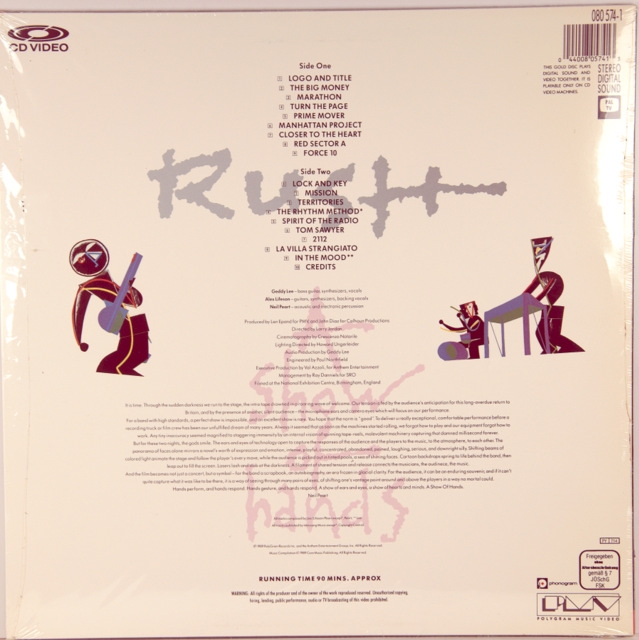 Video laser disc RUSH-GRACE UNDER PRESSURE TOUR-1986-UK-POLYGRAM MUSIC VIDEO-NTSC-number 080103-1 double sided silver ...more