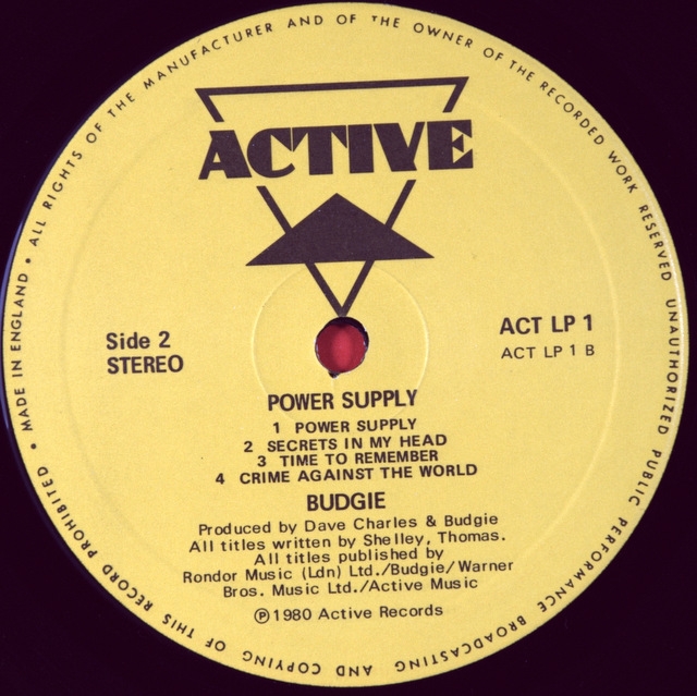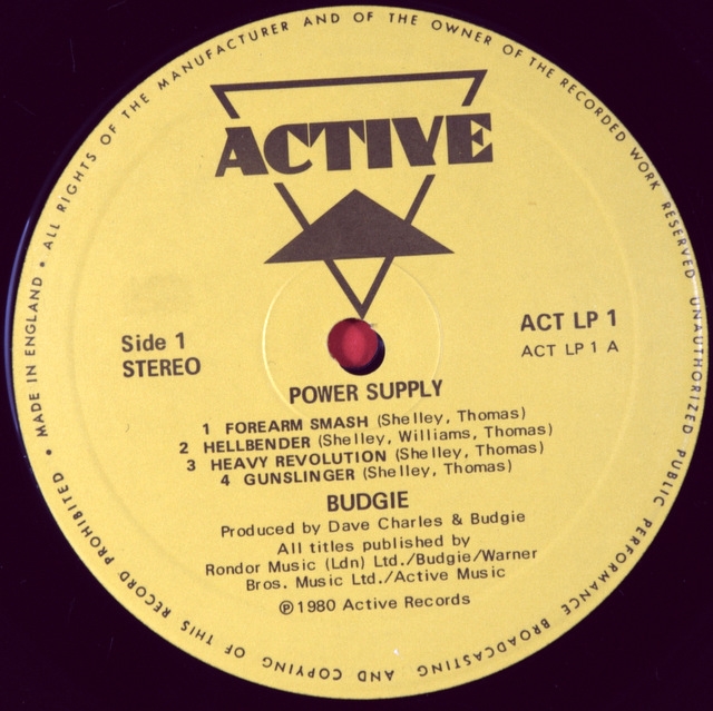Album of British rockers BUDGIE-POWER SUPPLY-1980-First UK press ACTIVE number ACTLP1 matrix A1/B1