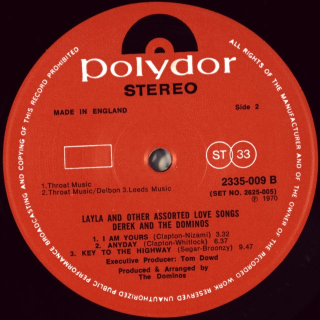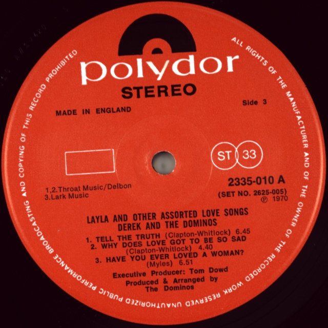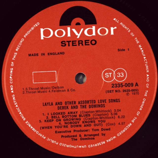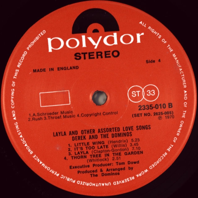 The legendary British guitarist ERIC CLAPTON DEREK & THE DOMINOS ( ERIC CLAPTON) -LAYLA AND OTHER ASSORTED LOVE SONGS-1970 - Second UK press-POLYDOR - number 2625005 matrix disc one-A1/B4 disc two - A1/B2