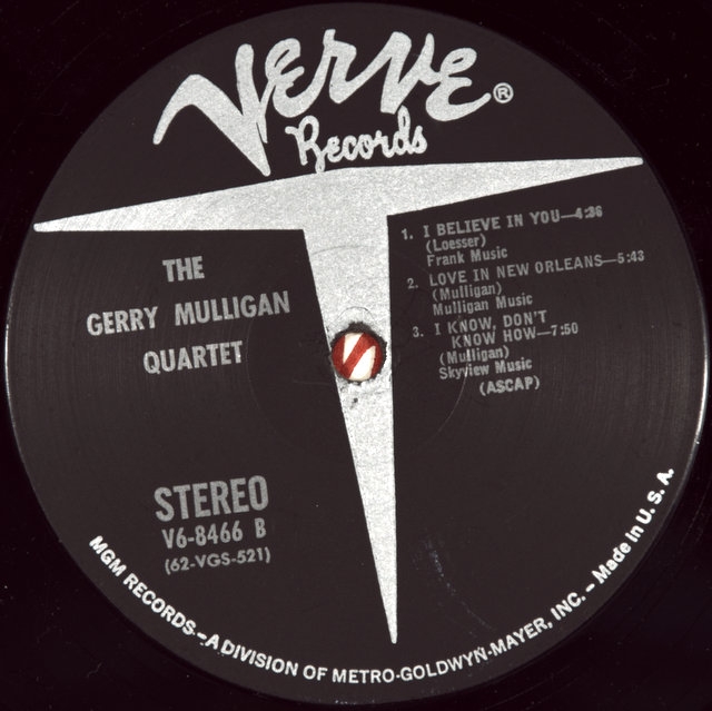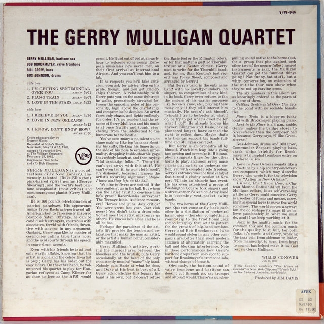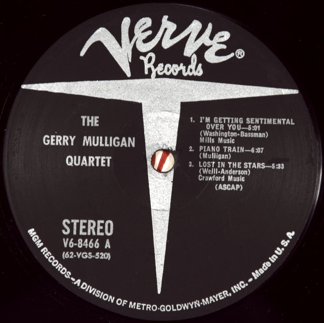 Album by American saxophonist GERRY MULLIGAN QUARTET-SAME-1962 - Second press-USA-VERVE-number V6-8466(STEREO) matrix A/G2-VG5-520-RE2 B/G2-VG5-521-RE2
