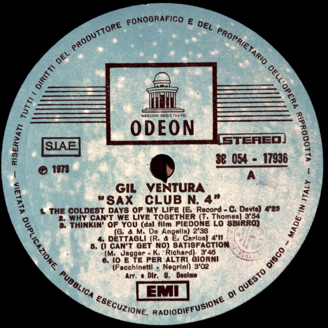 Album GIL VENTURA-SAX CLUB N 4-1973-First ITALY press-ODEON - number 3c054-17936