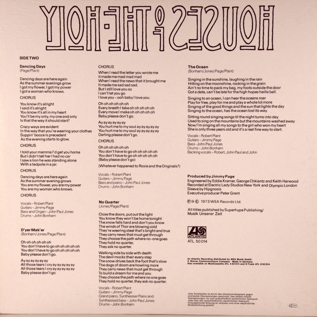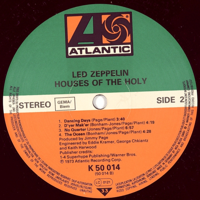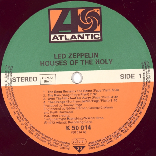 Fifth album the great LED ZEPPELIN-HOUSES OF THE HOLY-1973-Reissue of the early 80s -GERMANY-ATLANTIC-number K50014