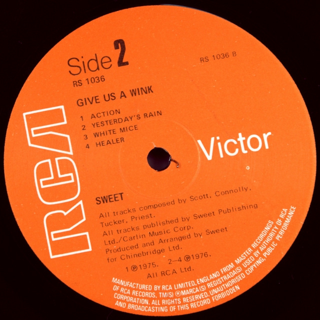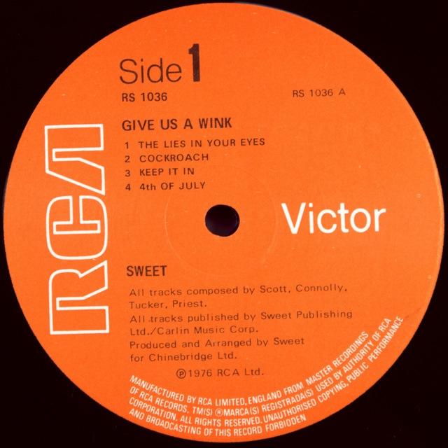Album SWEET GIVE AS A WINK! 1976 First press UK RCA number -RS1036 matrix-RS1036-A12E/B10E