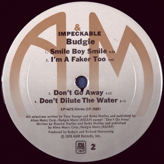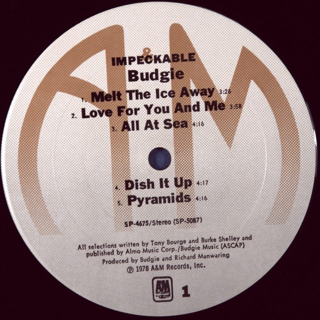 Альбом британской тяжелой рок группы BUDGIE-IMPECKABLE-1978-Первый пресс USA-A&M номер SP-4675 матрица A-P2/B-P1