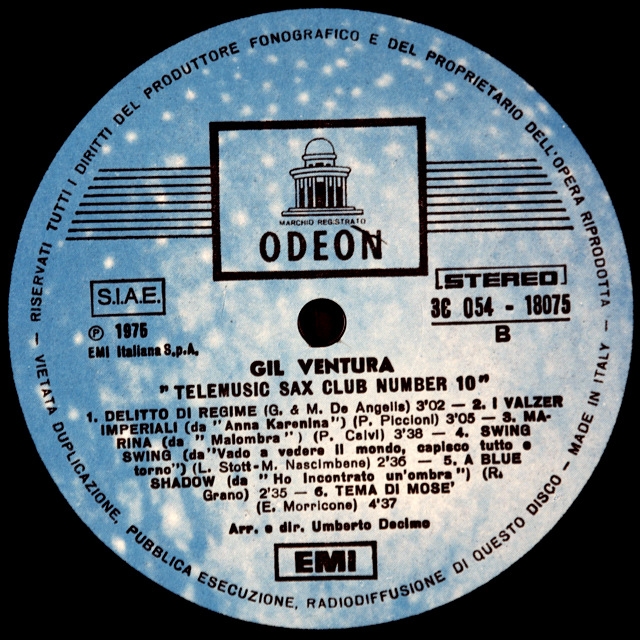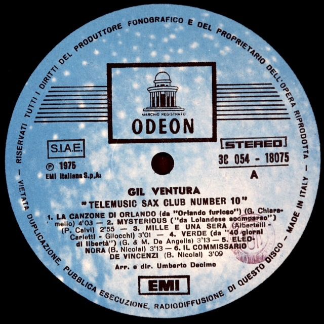 Альбом GIL VENTURA-SAX CLUB N 10-1975-Первый пресс ITALY -ODEON- номер 3c054-18075