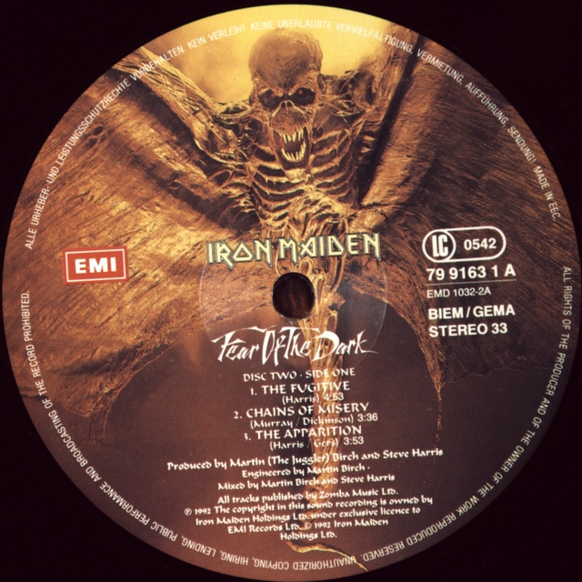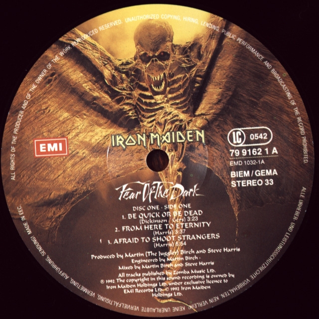 Редкая пластинка родоначальников метала IRON MAIDEN-FEAR OF THE DARK-1992-Первый пресс HOLLAND EMI номер 7991621, EMD 1032