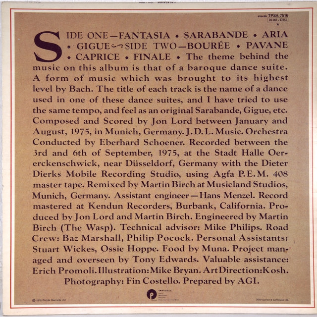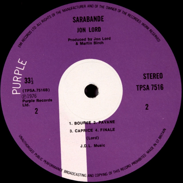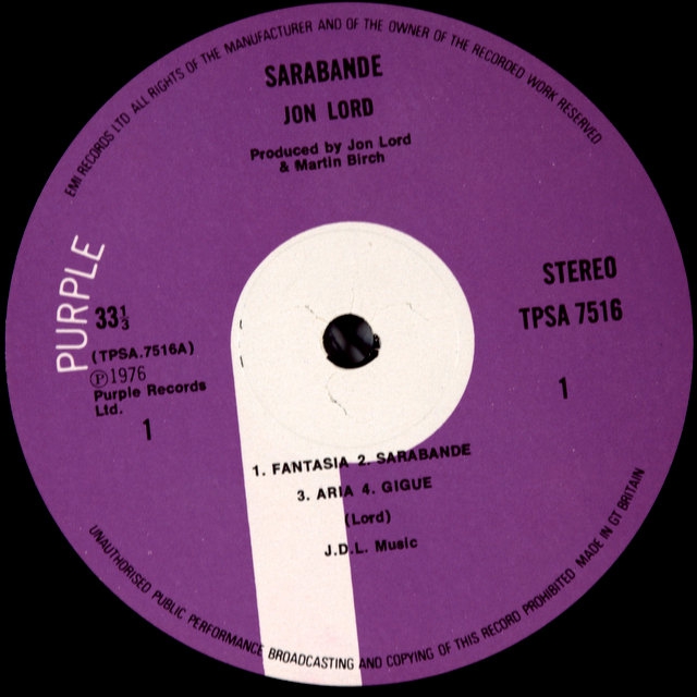 Сольный альбом клавишника DEEP PURPLE. JON LORD-SARABANDE-1976-Первый пресс UK-PURPLE REC.- номер TPSA-7516 матрицы A-1/B-1
