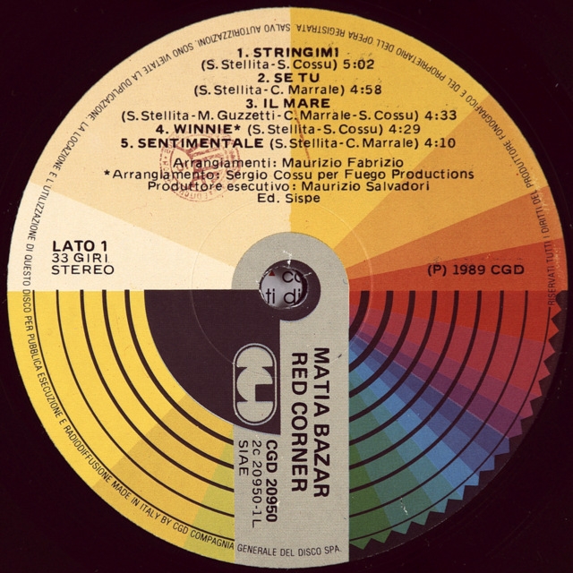 Редкий альбом итало-диско MATIA BAZAR-RED CORNER-1989-Первый пресс ITALY-CGD- номер 20950