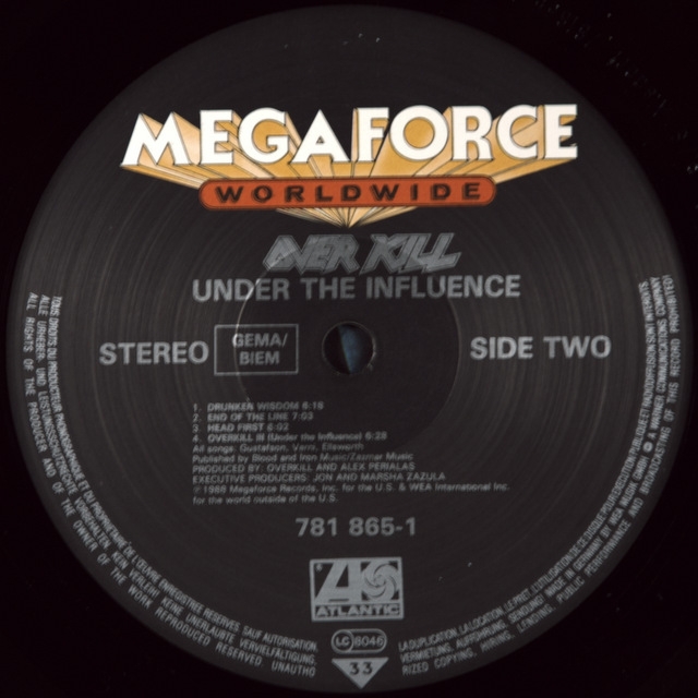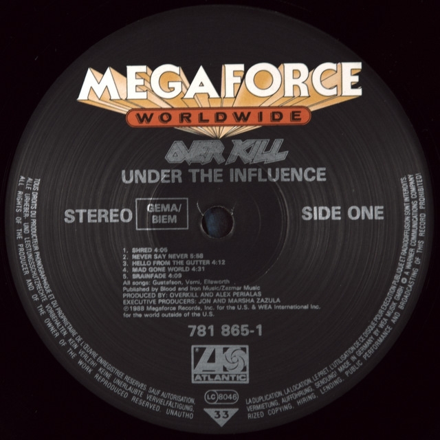 Один из лучших хард рок металических альбомов OVERKILL-UNDER THE INFLUENCE-1988-Первый пресс GERMANY-MEGAFORCE номер 781 865-1