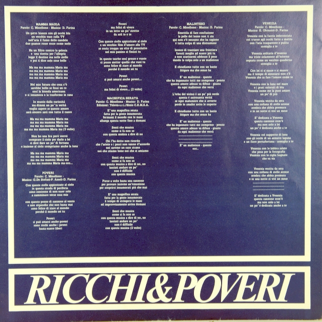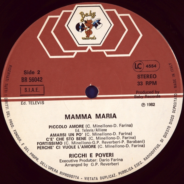 Альбом итало-диско популярной группы RICCHI & POVERI-MAMMA MARIA-1982-Первый пресс ITALY-BABY-номер BR56042