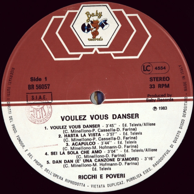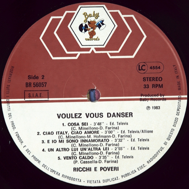 RICCHI & POVERI-VOULEZ VOUS DANSER-1983-Первый пресс ITALY-BABY-номер BR56057. Редкий диско альбом культовой итальянской группы.