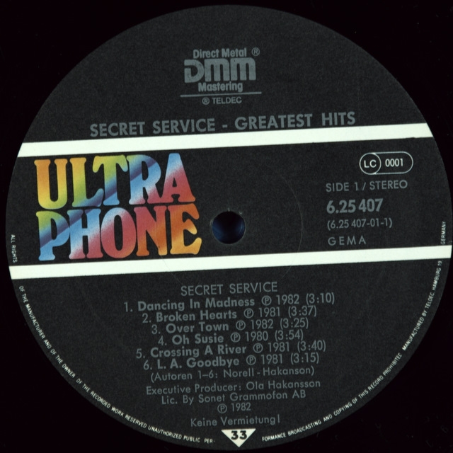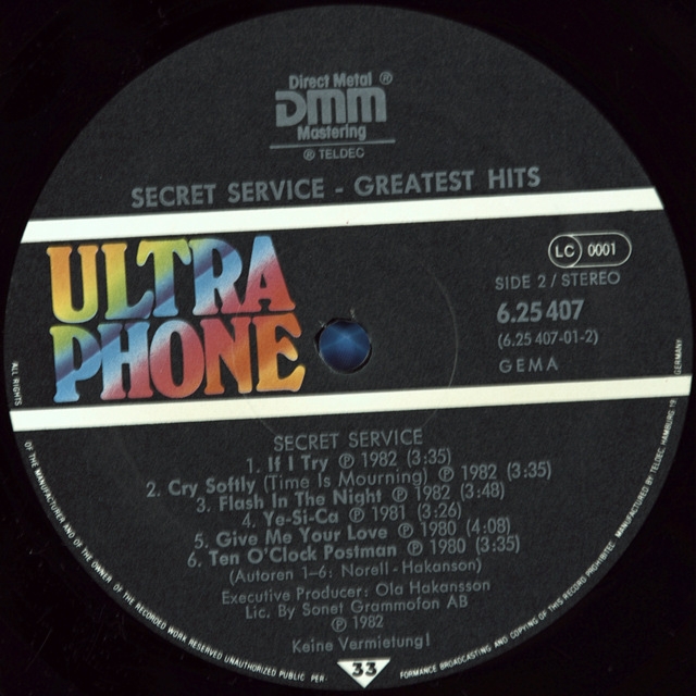 Сборник шведской диско поп нью вэйв группы SECRET SERVICE-GREATEST HITS-1982-Первый пресс GERMANY-ULTRA PHONE-номер 625407