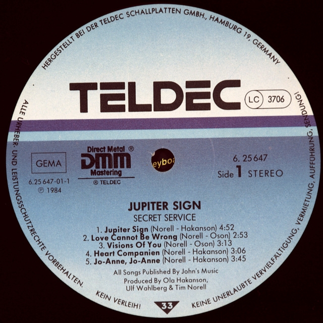 Лот 237SECRET SERVICE-JUPITER SIGN-1984-первый пресс germany-teldec-nmint/nmint