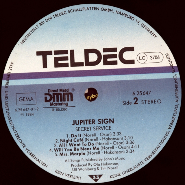Четвертый альбом шведской диско поп нью вэйв группы SECRET SERVICE-JUPITER SIGN-1984-Первый пресс GERMANY-TELDEC номер 625647