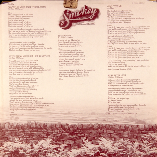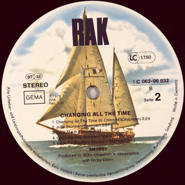 Очень редкий альбом SMOKIE(SMOKEY)-CHANCING ALL THE TIME-1975-Первый пресс GERMANY-RAK-номер 1с062-96832