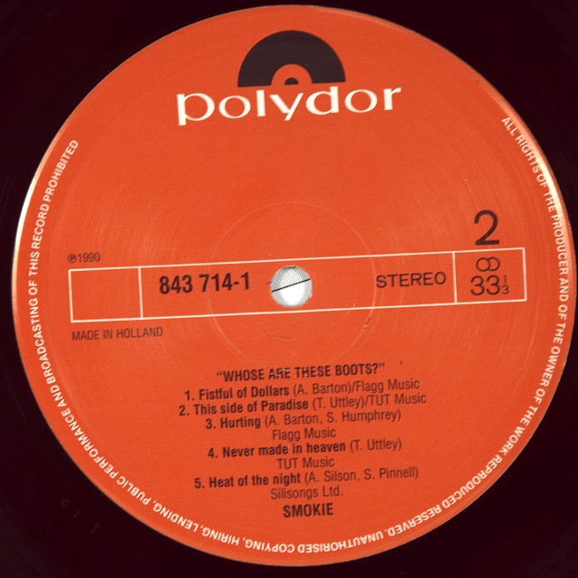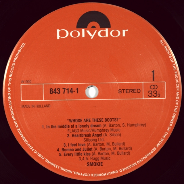 Очень редкий альбом SMOKIE-WHOSE ARE THESE BOOTS-1990-Первый пресс HOLLAND-POLYDOR номер 843714-1
