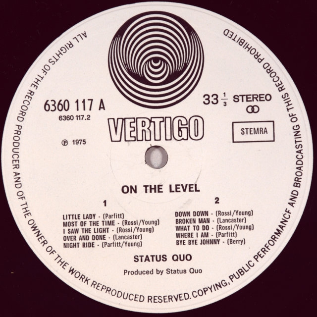 Альбом знаменитых британцев STATUS QUO-ON THE LEVEL-1975-Первый пресс экспорт ITALY-VERTIGO SWIRL-номер 6360117A матрицы A-1/B-1