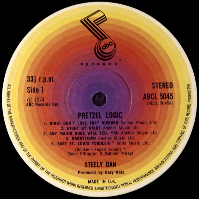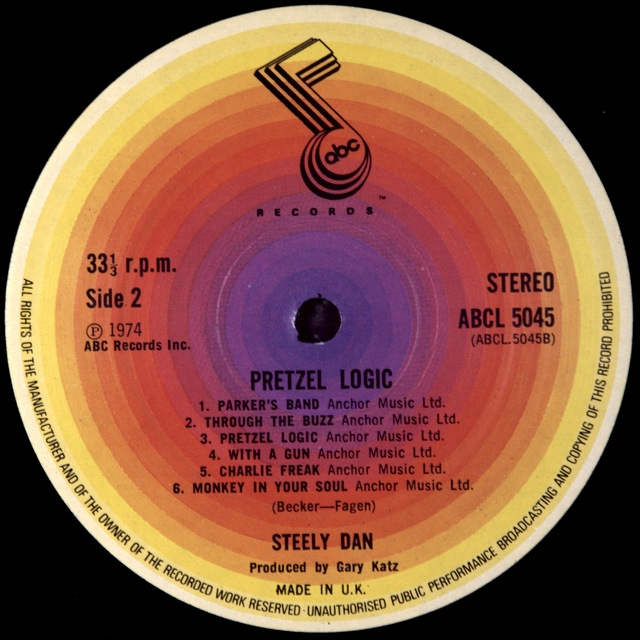 Третий альбом джаз рок прогрессивной группы STEELY DAN-PRETZEL LOGIC-1974-Второй пресс UK-ABC номер ABCL 5045