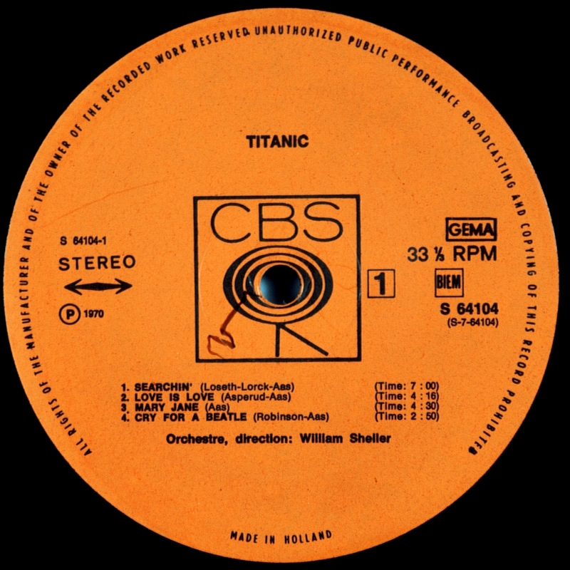 Первый альбом блюз прогрессивной группы TITANIC-SAME-1970-Первый пресс HOLLAND-CBS-номер S64104